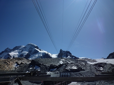 左手が4634mのモンテ・ローザ。手前にゴルナー氷河が流れています。