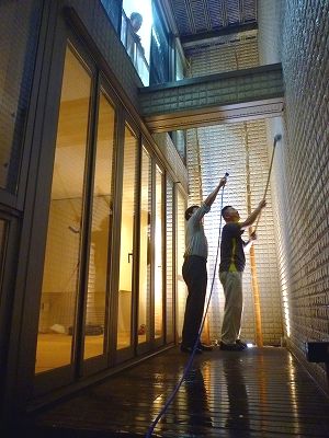夏の間の中庭に面した外壁も為田と水谷でごしごしごし・・・・