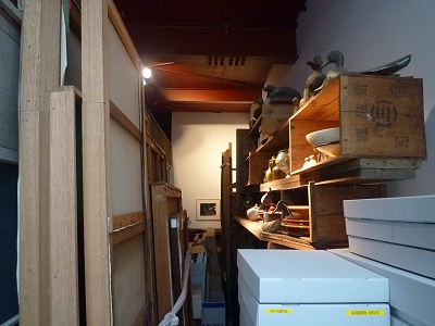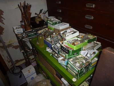 旧アトリエには、画材もそのまま。