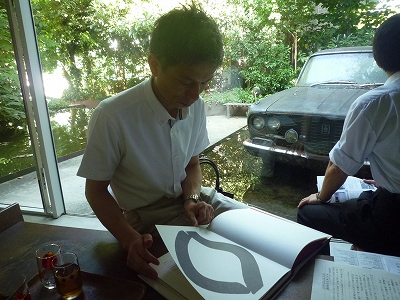 エントランスも旧家屋の材料。館名ロゴ度は原研哉デザインだそうです。