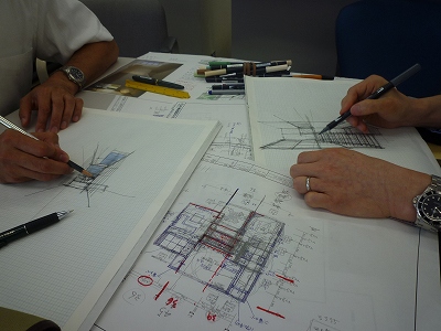 こうやって何枚ものスケッチで空間を確認しながら、