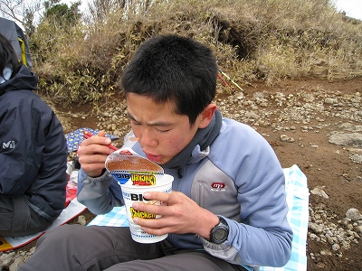 「頂上に近づくにつれ、曇り始めて、結局期待の富士山は見えず。」