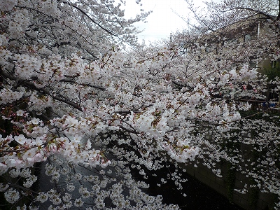 川幅が狭いので、両岸の桜が重なるように咲き競います。