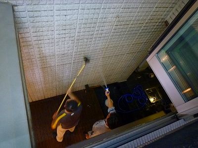 夏の間の中庭に面した外壁も為田と水谷でごしごしごし・・・・