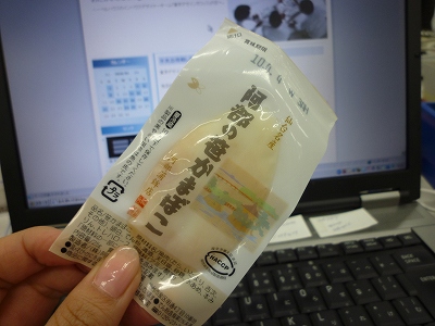 先週岩井が仙台に行ったのです。そのお土産の「笹かまぼこ」