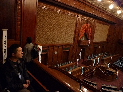 参議院議員用の傍聴席から眺めています。