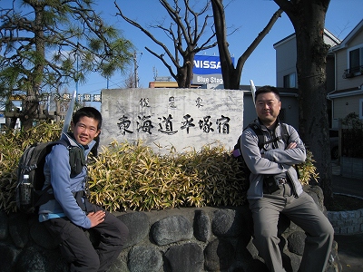 平塚宿で記念撮影。まだ元気そうにみえますが・・・