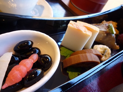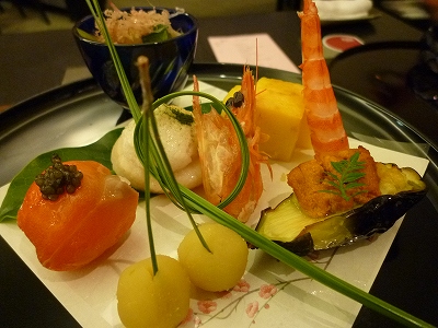 鰆の西京漬け、わさび漬け、鶏を炙ったもの、サラダ、蒸し物など・・・・。