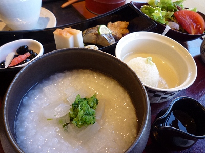 この日は七草。いつもはご飯党ですが、折角ですもの、七草粥をチョイス。