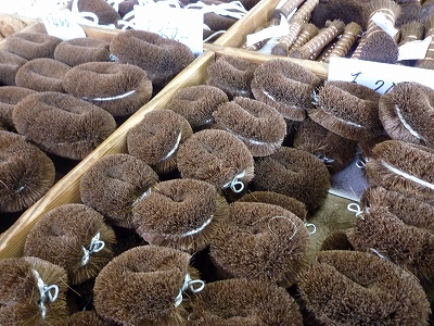 ほうきやたわしは主に保水性に優れたシュロで作られています。