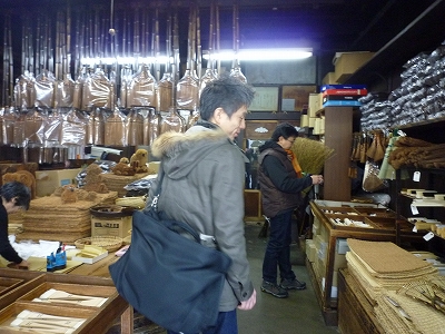 お部屋を掃くのにぴったりなサイズのシュロの箒を、荒川が選びました。