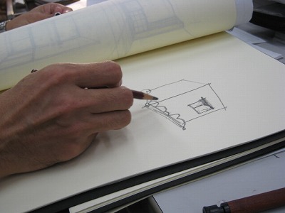 筆勢や筆圧で、建物の力強さや空間の広がりを現すことがことが出来ます。