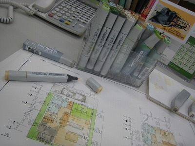 図面の着彩は主に.Tooのアルコールマーカー「コピック」を使用。