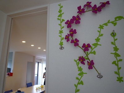 またまた楽しくアレンジされたコート掛けがお出迎えです。