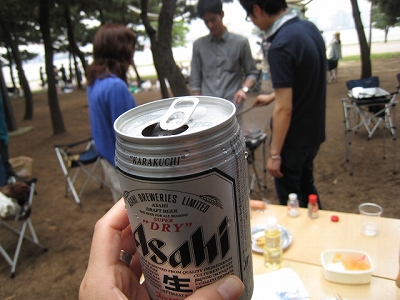 ビール片手に待つ!!( ̄▽ ̄)オナカスイター