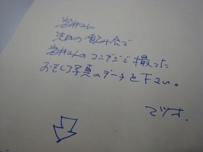 岩井のデスクにこのようなメモを残しましたら・・・。