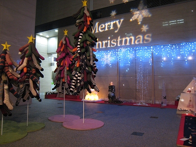 ビルのエントランスホールでは「私のクリスマスツリー展」が。