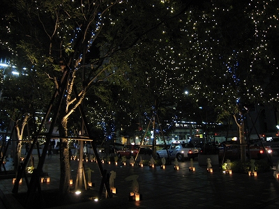 中目黒駅までの広場もライトアップ。