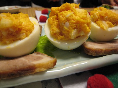 黄身にセロリと辛子明太子を混ぜ込んでいるのだそうです。