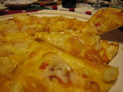 カニたっぷりの焼きたてピッツア。