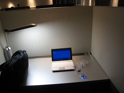 ビジネスブースも快適通信!いやあ、落ち着いたインテリアもいいですねー。