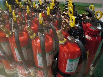 実際の消火器と同じものですが中身は水。