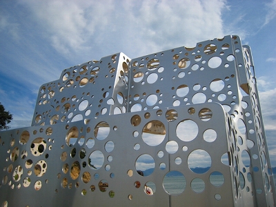画面左の崖にあるのが杉本博司「タイム・エクスポーズド」