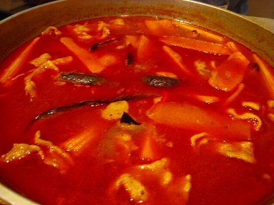 「鍋ぶん」さんのカレー鍋は「赤カレー鍋」。スパイシー系です。