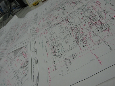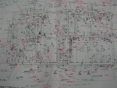 ちなみに、これは荒川担当の物件を、渋谷デザインオフィス内でチェックした後です。しかも、赤で書かれている膨大な量のコメントは、他の3人みんなのものではなく、