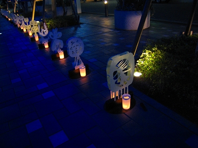 街路樹の足元にはキャンドルが。