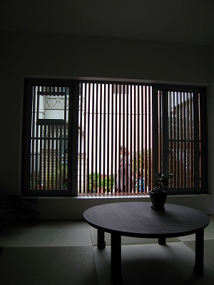 この格子越しに眺めると、道を行く自転車のおじさんも、犬の散歩も、不思議と絵になります。